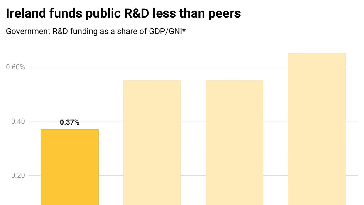 Where Ireland falls down is in how much of that research is publicly funded. By some measures, just 13 per cent of Irish R&D is funded by the state. That is one of the lowest shares in the EU.