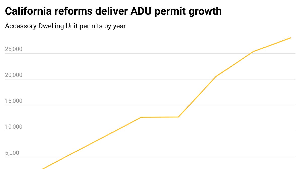 In those six years, California’s ADU approvals went up by 15,334 per cent. As of 2022, 19 per cent of all housing units produced in California – or nearly one in five homes – was an ADU.