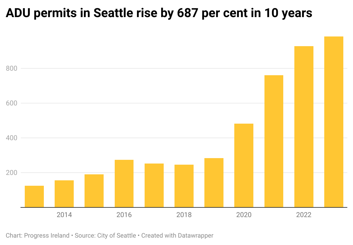 Seattle stands out as a leader in proactive schemes to support ADU construction. Regulatory changes combined with city-led outreach has increased their ADU permits by 253%. The scale of ADU production in Seattle was achieved by adopting regulations explicitly designed to encourage supply.