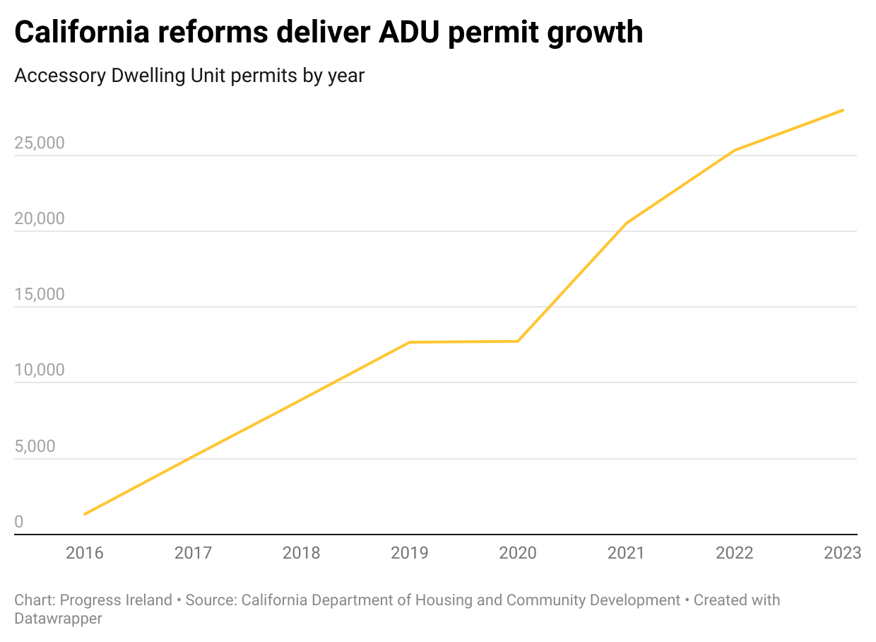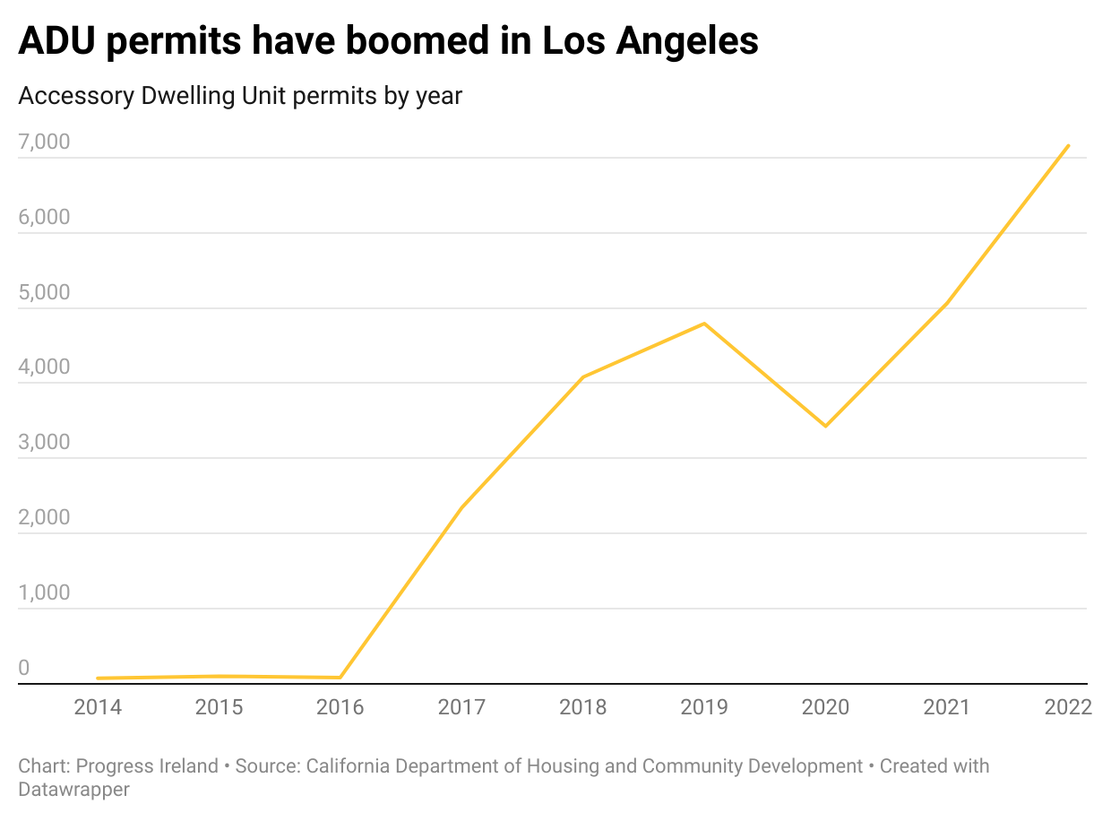 A similar story can be told in Los Angeles. In 2022, 1 in 3 homes permitted in Los Angeles was an ADU. At least 26,862 ADUs have been permitted in LA alone since legalisation. But it wasn’t always like that.