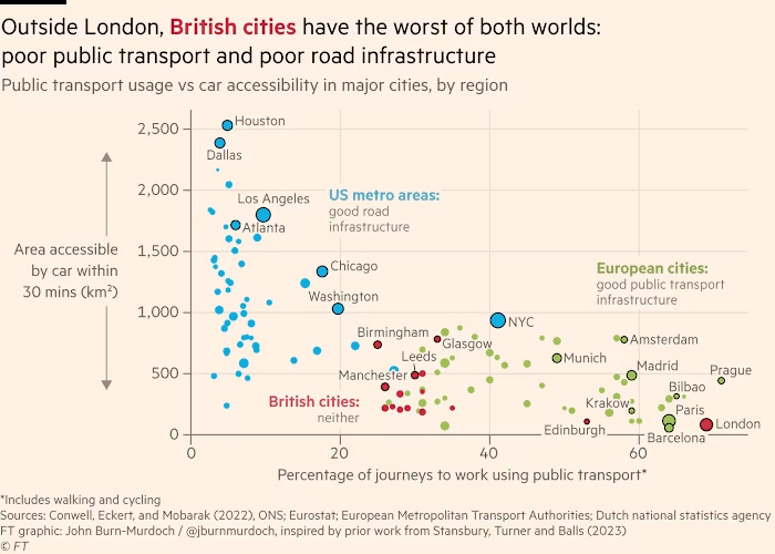 It is hard to beat this graph from John Murdoch Burns of the Financial Times which makes this point well. The top left shows the car performance of US cities. It comes with costs but lots of roads are one way to connect huge numbers of people. The best housing systems connect people to each other and things like jobs and services, whether by road or rail.